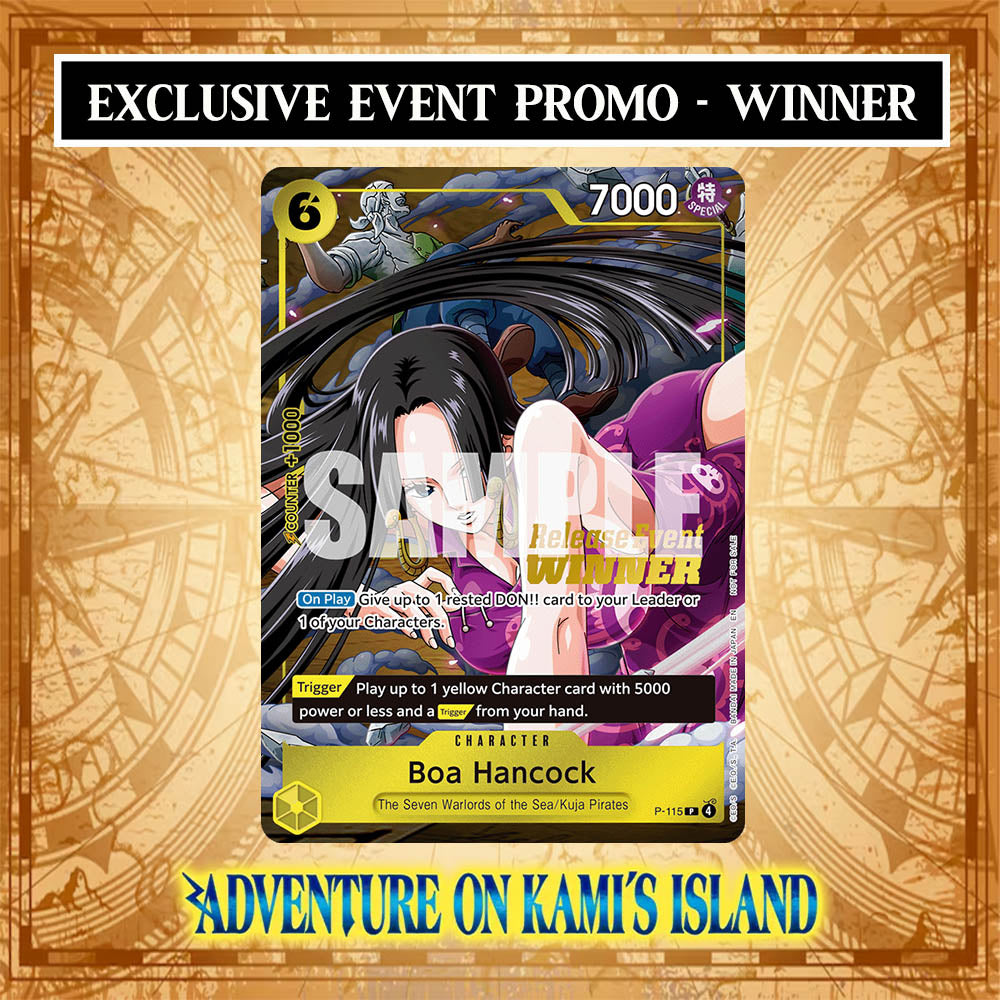 Each player will receive 6 Sealed Booster packs, These packs will be Adventure on Kami's Island Boosters and you will receive a special participation pack upon completion of the event.The Winner will receive the Winner's Pack Prize!